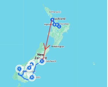 Route: Auckland (AKL) to Christchurch (CHC), Return