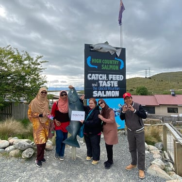 Hari ini bermula dengan bertolak ke High Country Salmon untuk melawat salmon hatchery, di mana anda dapat melihat sendiri proses penternakan salmon serta suasana ladang ikan yang terkenal di kawasan ini.
