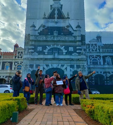 Seterusnya kami akan ke Dunedin Railway Station dan Baldwin Street. Perjalanan diteruskan ke Moeraki, singgah di Shag Point Lookout dan Koekohe Beach untuk melihat Moeraki Boulders yang unik. Seterusnya, perjalanan ke Timaru.