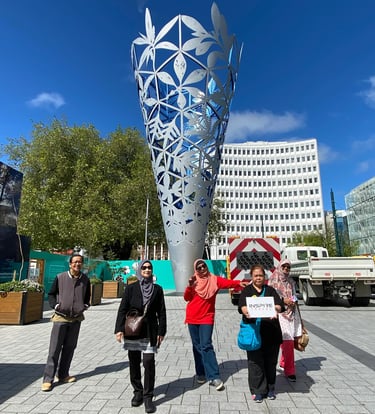 Seterusnya, kami ke SkyTower untuk menikmati pemandangan 360° Auckland. Perjalanan diteruskan ke Hamilton dengan lawatan ke Hamilton Gardens dan Masjid Hamilton.
