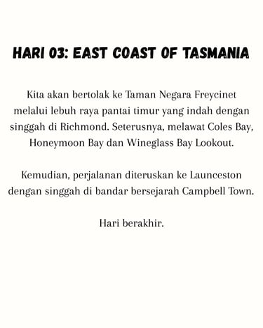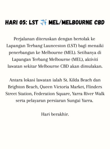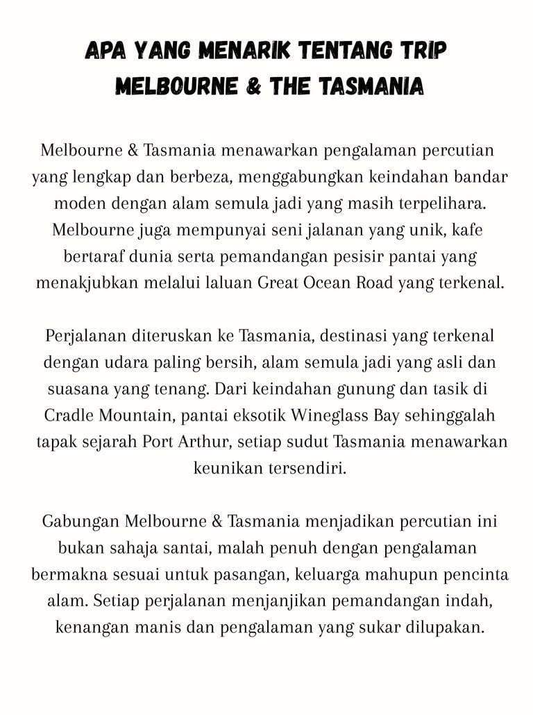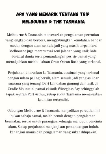Percutian ke Melbourne & Tasmania memang terbaik. Pemandangan cantik, perjalanan lancar dan servis sangat memuaskan. Highly recommended