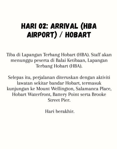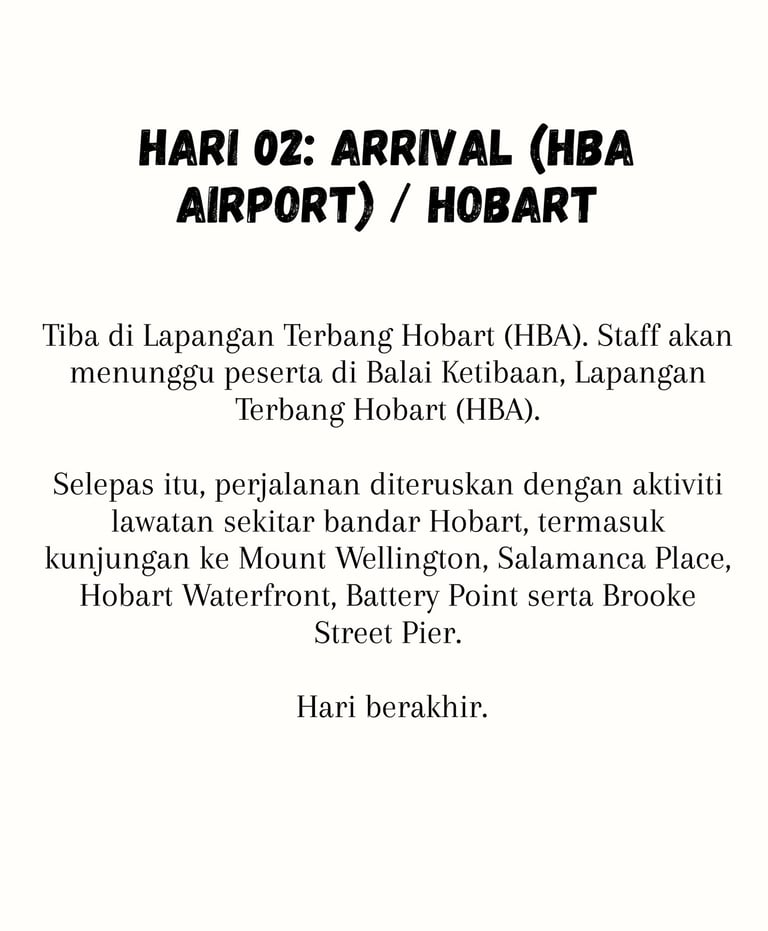 From Hobart (HBA) Airport on Day 02 (11.00 AM)