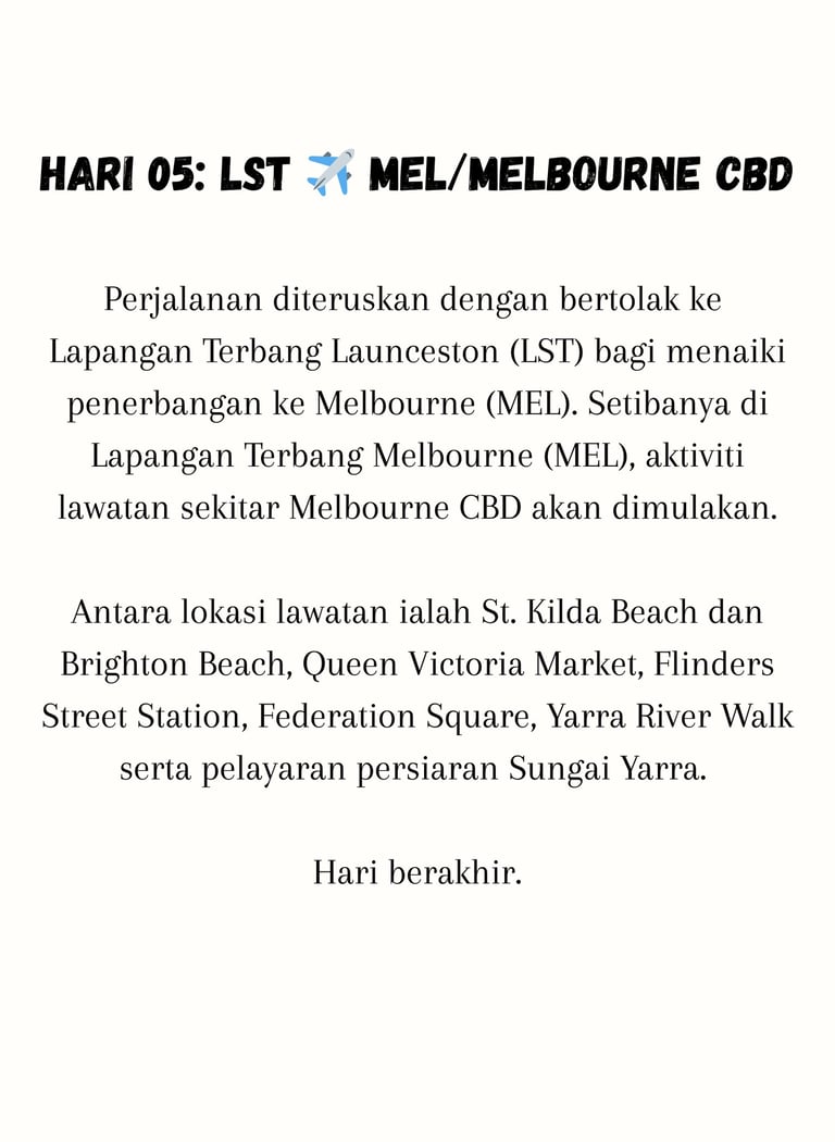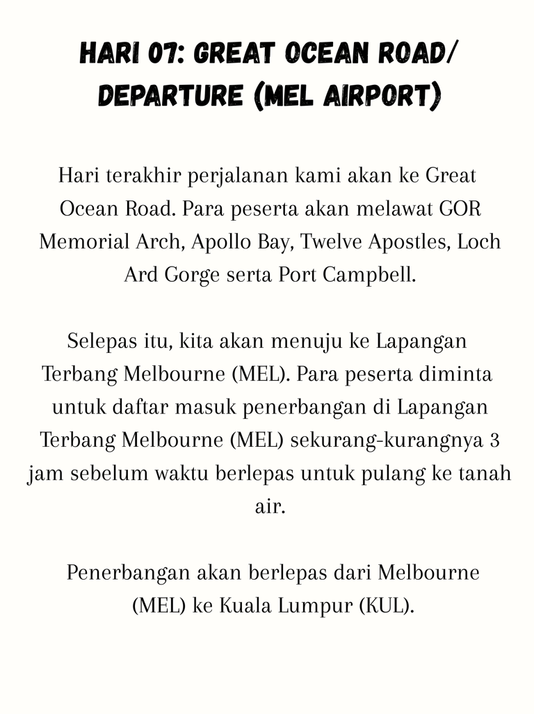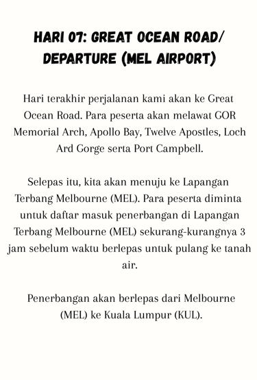 To Melbourne (MEL) Airport on Day 07 (06.00 PM)
