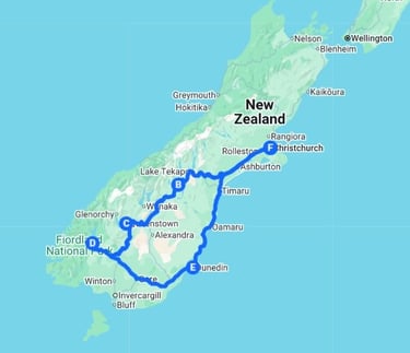 LAKE TEKAPO - MT.COOK - QUEENSTOWN - MILFORD SOUND - DUNEDIN - CHRISCHURCH