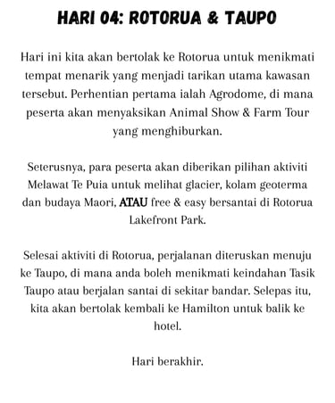 AUCKLAND - HAMILTON - ROTORUA - TAUPO - MATAMATA